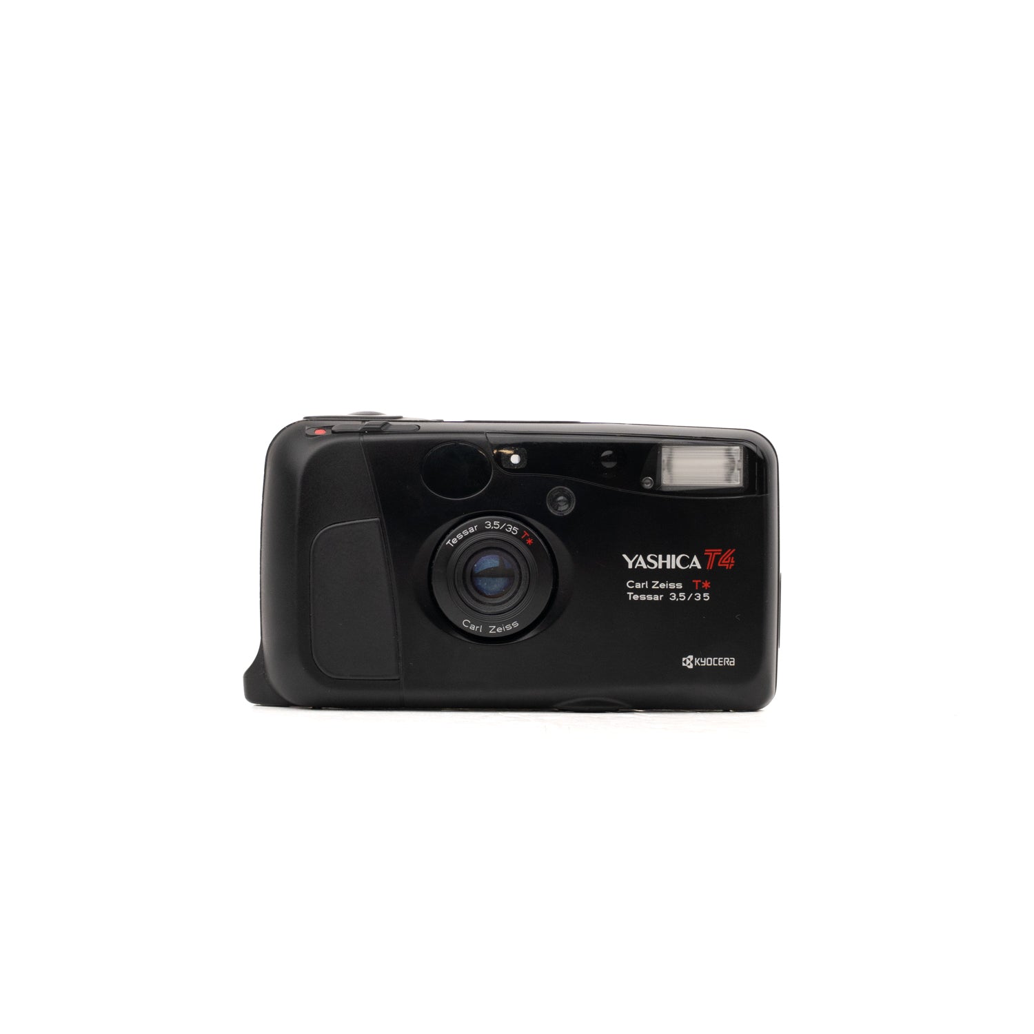 Condition: This Yashica T4 is in good working order with minor cosmetic wear (light scratches or scuffs possible). The Carl Zeiss lens is clean and free from fungus or haze. Film advance/rewind, autofocus, and flash functions operate correctly. The viewfinder is clear and all main functions operate as intended.